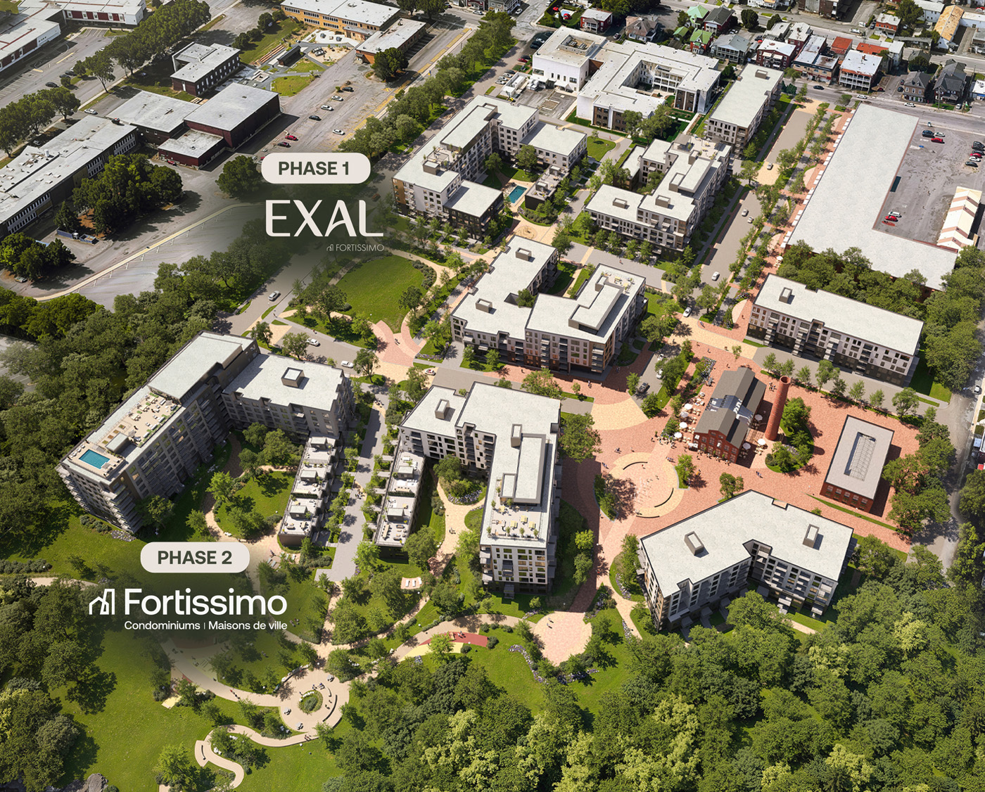 Fortissimo Écoquartier est une véritable opportunité de vivre autrement, dans un cadre de vie écoresponsable et exceptionnel. Avec plus de 850 unités d’habitation déployées en 7 phases, sa conception célèbre également l’héritage industriel du secteur, tout en marquant sa transition vers une urbanité verte et renouvelée. Au fil du temps, condos locatifs, maisons de ville et condominiums rassembleront différentes générations ainsi que les ménages en quête d’exclusivité. Propriétaires et locataire sont invités à faire partie intégrante de ce projet riverain audacieux et sans précédent au Québec, dès l’été 2027.